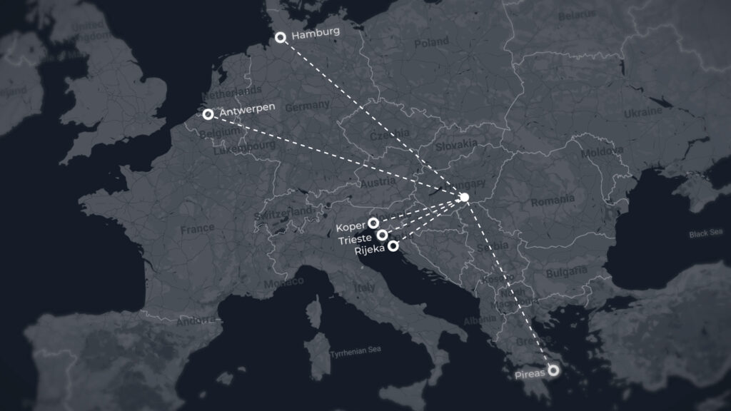 Vasúti összeköttetés a tengeri kikötőkkel és jelentős európai logisztikai, ipari központokkal